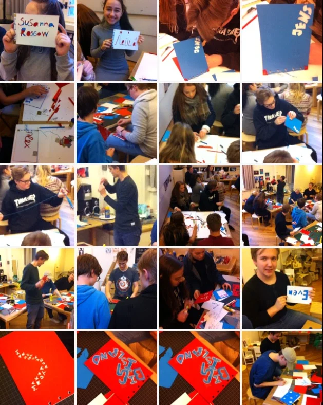 working with Blindern vidergående skole today. Nice group. working on architecture and thoughts around public and private spaces. Prisons and bank vaults! All mixed colour papers and mixed colour pens. They are so used to the screen, they wow themselves, actualy making their own book, with their own thoughts in. Some were not sure they were 'allowed' to take it home. Was 'their' book, really theirs to take home? one of them asked.